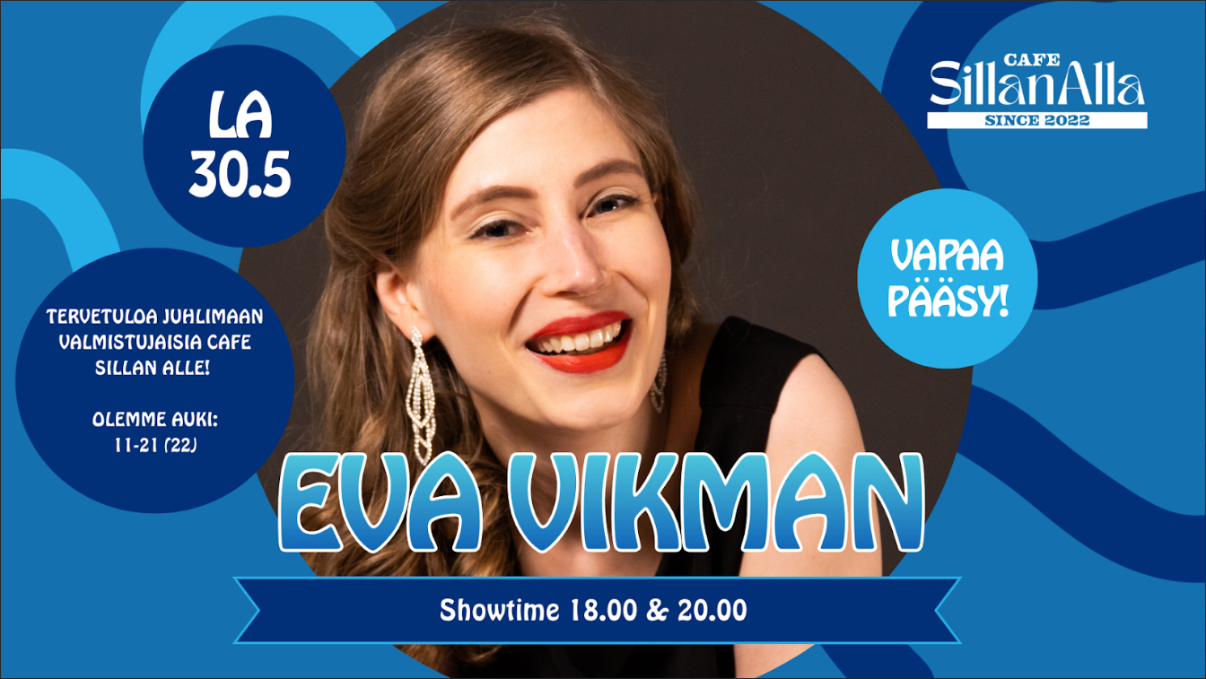 Eva Vikman on upeaääniseksi ja vangitsevan läsnäolevaksi luonnehdittu laulaja sekä valtakunnallisissa sävellys- ja sanoituskilpailuissa palkittu lauluntekijä. Aktiivisesti Suomea kiertävän artistin musiikissa popin, jazzin ja iskelmän elegantti estetiikka punoutuu syvällisen myötätuntoisiin pohdintoihin elämästä. Tunnistettavat, tarttuvat melodiat, rikkaat harmoniat ja voimaannuttavat lyriikat vievät kuulijan ainutlaatuiselle musiikilliselle matkalle. Ohjelmistoa täydentävät tyylikkäästi tähän aikaan tuodut, rakastetut iskelmäklassikot. Vikmanin rinnalla soittaa kansainvälisesti noteerattu kitaravirtuoosi Teemu Rämö, joka on valmistunut musiikin maisteriksi Tanskan Royal Academy of Musicista.